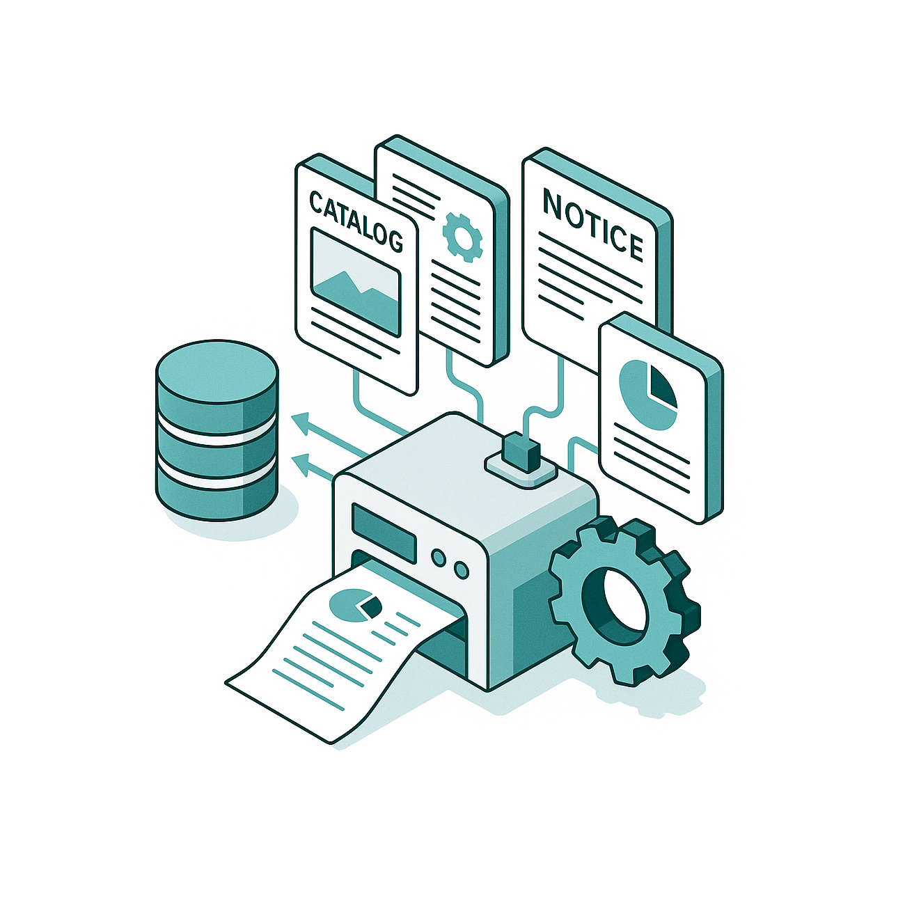 Nous concevons des flux de production sur mesure, connectés à vos bases de données, pour générer automatiquement vos documents techniques — en print et en digital.